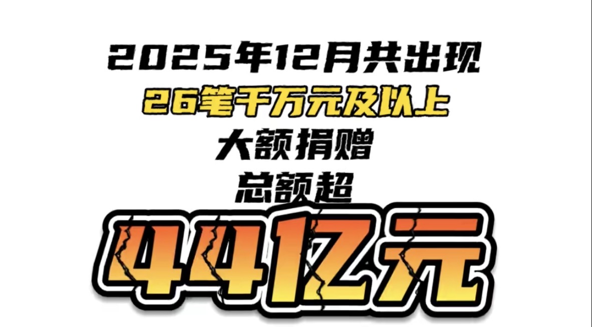 2025年12月大額捐贈(zèng)一覽:千萬元及以上捐贈(zèng)超44億元,九成流向教育領(lǐng)域