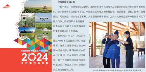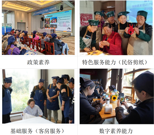 ▲數(shù)字木蘭普惠班:根據(jù)《民宿管家國(guó)家職業(yè)標(biāo)準(zhǔn)(2024 年版)》要求,結(jié)合消費(fèi)群體對(duì)民宿服務(wù)的需求,開展政策素養(yǎng)、基礎(chǔ)服務(wù)、特色服務(wù)和數(shù)字素養(yǎng)四項(xiàng)能力的實(shí)操性培訓(xùn)。