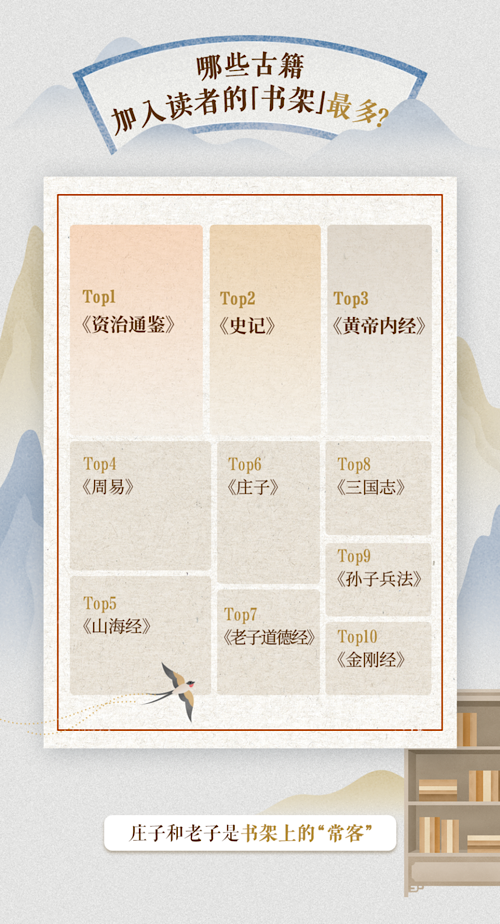 2025年4月,識典古籍App上線,支持用戶在手機(jī)查看古籍并使用各項(xiàng)功能,進(jìn)一步提升了閱讀便利性。報(bào)告顯示,App內(nèi)《資治通鑒》《山海經(jīng)》《黃帝內(nèi)經(jīng)》成為最受讀者喜愛的古籍,排名第一的《資治通鑒》每天有近千名讀者閱覽。同時(shí)也是每日被讀者加入“書架”最多的古籍,《莊子》《道德經(jīng)》等成為讀者“書架”上的??汀?/p>
