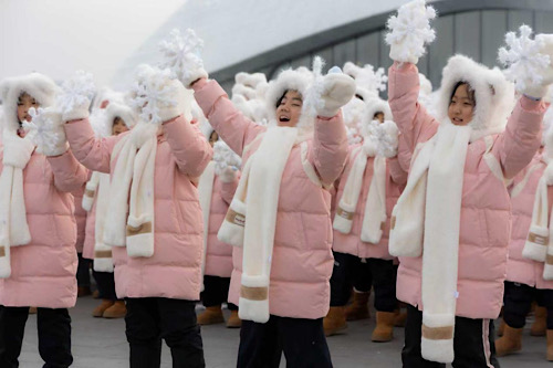 憑著刻苦與堅持,女孩們實現(xiàn)了從樂理零基礎(chǔ)到熟練掌握合唱技藝的跨越??扉W活動當天,寒風里的她們緊緊牽著同伴的手,眼神堅定、站姿挺拔,齊聲唱響《冰雪同夢》,純凈的童聲響徹廣場。