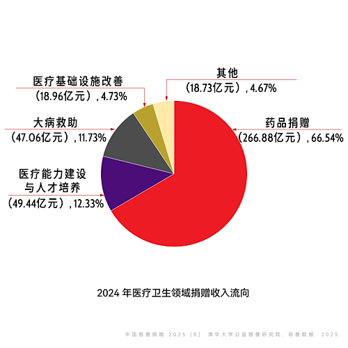 日前,由清華大學(xué)公益慈善研究院和易善數(shù)據(jù)聯(lián)合研究、撰寫和發(fā)布的《中國(guó)慈善捐贈(zèng)2025》報(bào)告顯示,2024年,醫(yī)療衛(wèi)生領(lǐng)域接收慈善捐贈(zèng)401.07億元,占全國(guó)慈善捐贈(zèng)總額的30.28%,繼續(xù)位居九大領(lǐng)域首位。盡管如此,這一領(lǐng)域同比下降了27.71%。如果只看數(shù)字,這似乎意味著醫(yī)療慈善在收縮;但如果進(jìn)一步觀察結(jié)構(gòu),會(huì)發(fā)現(xiàn)更值得注意的是:醫(yī)療慈善的支持邏輯正在發(fā)生變化。