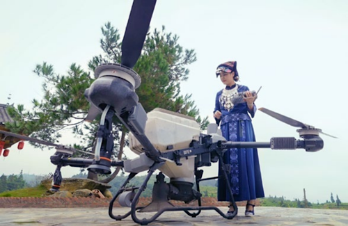 湖南省永順縣項(xiàng)目點(diǎn)女飛手在操作無(wú)人機(jī)
