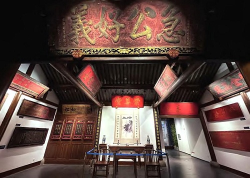 隨著歷史發(fā)展,匾額的形制不斷演進(jìn),“匾有橫豎,體裁不同,字有疏密,形勢(shì)亦異”;匾額的功能逐漸拓展,除了建筑標(biāo)識(shí)這一原始功能外,旌表賀頌也成為匾額的重要功能和用途。據(jù) 《后漢書(shū)》記載:“凡有孝子順孫,貞女義婦,讓財(cái)救患,及學(xué)士為民法式者,皆扁表其門(mén),以興善行”,說(shuō)明通過(guò)贈(zèng)立匾額來(lái)激勵(lì)和表彰 “讓財(cái)救患”的善人善行歷史悠久。