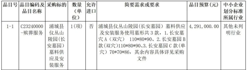 二、項(xiàng)目名稱:福建省南平市浦城縣儀叢山陵園(長(zhǎng)安墓園)墓料供應(yīng)及安裝服務(wù)