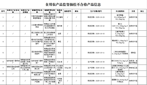 海南省公布12批次不合格食品名單 涉及食品添加劑超范圍超量使用等問題(G)