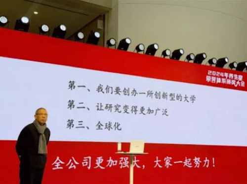 2025年1月22日,農(nóng)夫山泉母公司養(yǎng)生堂集團(tuán)舉辦年會(huì),農(nóng)夫山泉?jiǎng)?chuàng)始人鐘睒睒出席并發(fā)表演講。會(huì)上,鐘睒睒首次透露要?jiǎng)?chuàng)辦一所創(chuàng)新型的大學(xué),并計(jì)劃未來10年捐贈(zèng)400億元。圖片來源:新華網(wǎng)