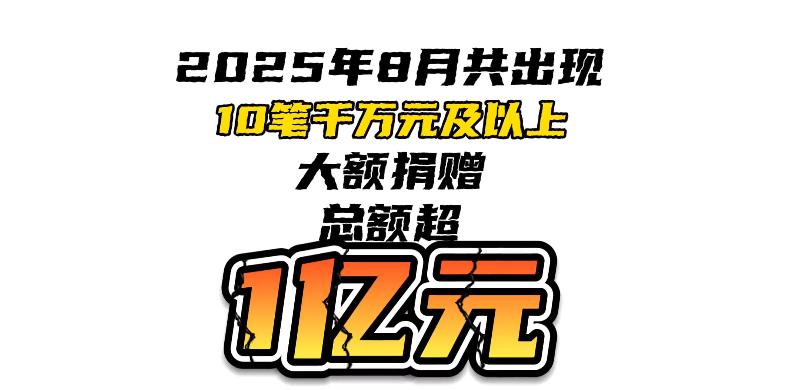 2025年8月大額捐贈(zèng)一覽:千萬(wàn)元及以上捐贈(zèng)下滑明顯,近半流向救災(zāi)領(lǐng)域