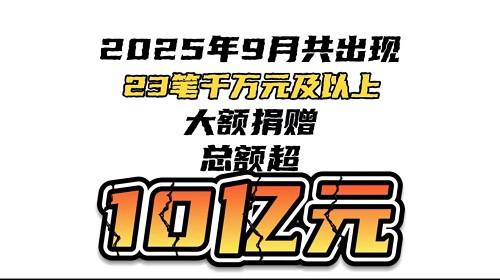 2025年9月大額捐贈(zèng)一覽:千萬元及以上捐贈(zèng)超21億元,捐贈(zèng)總額明顯回升