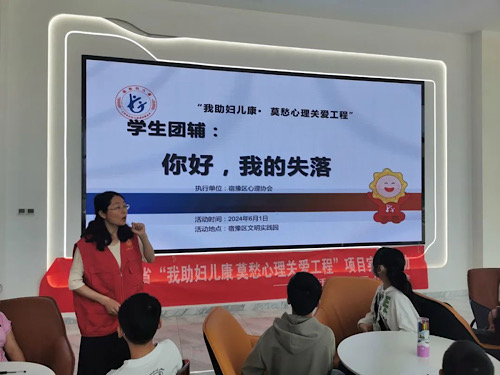 精神關(guān)愛:以“我助婦兒康?莫愁心理關(guān)愛工程”項目為依托,與各方合作建立一批“我助婦兒康?莫愁心理關(guān)愛”公益基地。通過開展心理健康知識講座、心理測評等活動,為全市有心理疏導需求的婦女兒童提供免費幫助。以宿豫區(qū)心理協(xié)會為例,項目實施以來,聚合10位專業(yè)人士的力量,通過多種形式為有需求的婦女兒童提供個性化心理援助等服務。截至2024年年底,已開展300多場講座和個案咨詢等活動,使2萬多人次婦女兒童得到心理關(guān)愛。