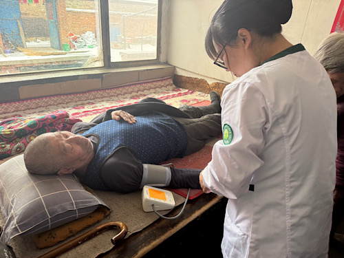 針對鄉(xiāng)村家庭普遍存在的照護知識欠缺問題,本次回訪強化了現(xiàn)場指導。唐山福壽康養(yǎng)老服務有限公司的志愿者張杰,一邊講解一邊為家屬演示如何為臥床老人正確翻身、拍背,如何觀察皮膚預防褥瘡,并講解正確測量血壓的方法。“不能頭暈了才吃藥,要定時、定點,固定測量同一側手臂,比如每天早晨測量并記錄,這樣才能掌握血壓的真實情況。”張杰耐心解釋道。