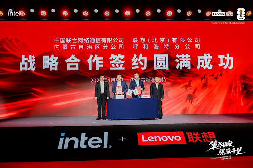 當(dāng)日大會上,除生態(tài)公益外,聯(lián)想與內(nèi)蒙古的科技合作再結(jié)碩果 —— 聯(lián)想(北京)有限公司呼和浩特分公司與中國聯(lián)合網(wǎng)絡(luò)通信有限公司內(nèi)蒙古分公司正式簽署2026—2029 年戰(zhàn)略合作協(xié)議。內(nèi)蒙古聯(lián)通黨委書記、總經(jīng)理韓敏出席并見證簽約,期待與聯(lián)想攜手共拓數(shù)智合作新局。雙方將立足資源共享、優(yōu)勢互補(bǔ),在基礎(chǔ)通信、云計算、大數(shù)據(jù)、5G + 行業(yè)應(yīng)用、網(wǎng)信安全、國產(chǎn)適配、科技創(chuàng)新等九大領(lǐng)域深度協(xié)同,共同推動內(nèi)蒙古數(shù)字經(jīng)濟(jì)高質(zhì)量發(fā)展。