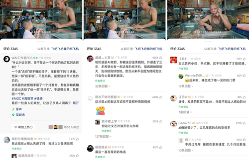 “不敢相信這是AI”“竟然不是真人演的”“被AI騙走了一車眼淚”……《紙手機(jī)》一經(jīng)上線,震撼便相伴而來(lái)。從畫面質(zhì)感來(lái)看,演員的皮膚紋理、場(chǎng)景的光影層次以及市井街巷的煙火氛圍,都高度逼近真人實(shí)拍的視聽效果。