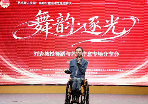 4月14日晚,中國文學(xué)藝術(shù)基金會發(fā)起的“藝術(shù)家進(jìn)校園”美育公益活動,在共青團(tuán)中國農(nóng)業(yè)大學(xué)委員會、中國農(nóng)業(yè)大學(xué)黨委學(xué)生部心理健康教育中心大力支持下在北京溫情啟航。著名舞蹈藝術(shù)家、北京舞蹈學(xué)院教授劉巖以“舞韻·逐光”為主題,與青年學(xué)子展開了一場關(guān)于藝術(shù)、成長與公益的深度對話與互動體驗(yàn)。這標(biāo)志著基金會推動“文藝力量服務(wù)青年成長”邁出了創(chuàng)新性的一步。