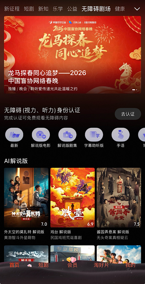 2026中國(guó)盲協(xié)網(wǎng)絡(luò)春晚登錄優(yōu)酷 首次實(shí)現(xiàn)“影像直播+無(wú)障礙觀演”