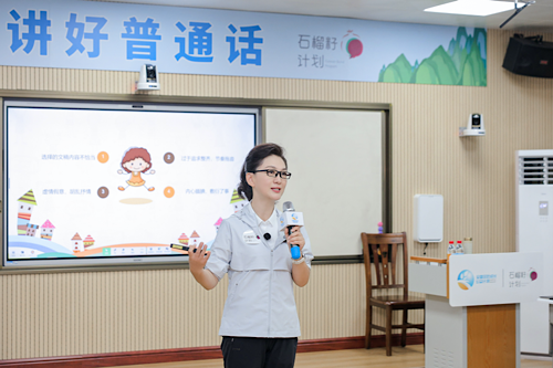 此次活動(dòng)的主題為“上好體育課,講好普通話”。為此,中央廣播電視總臺(tái)總編室播音員主持人管理中心副主任、“石榴籽計(jì)劃”發(fā)起人海霞也來到現(xiàn)場(chǎng),為同學(xué)們帶來了一堂別開生面的普通話課堂。據(jù)悉,“石榴籽計(jì)劃”致力于在邊疆地區(qū)、民族地區(qū)、欠發(fā)達(dá)地區(qū)推廣普及普通話,用國(guó)家通用語言鞏固脫貧攻堅(jiān)成果,助力鄉(xiāng)村振興。